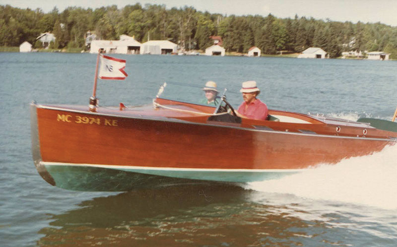 “Gene would go get the boats on the St. Clair River, and drive them to the marina. And they were always filled with extra parts since there was no UPS then,” she says. “Back in 1928 he was bringing Scamp from Algonac to the marina, heavily loaded of course. Along the way a terrible storm blew up. He battled 8-foot rollers for hours, and then hit a log in Saginaw Bay.”
