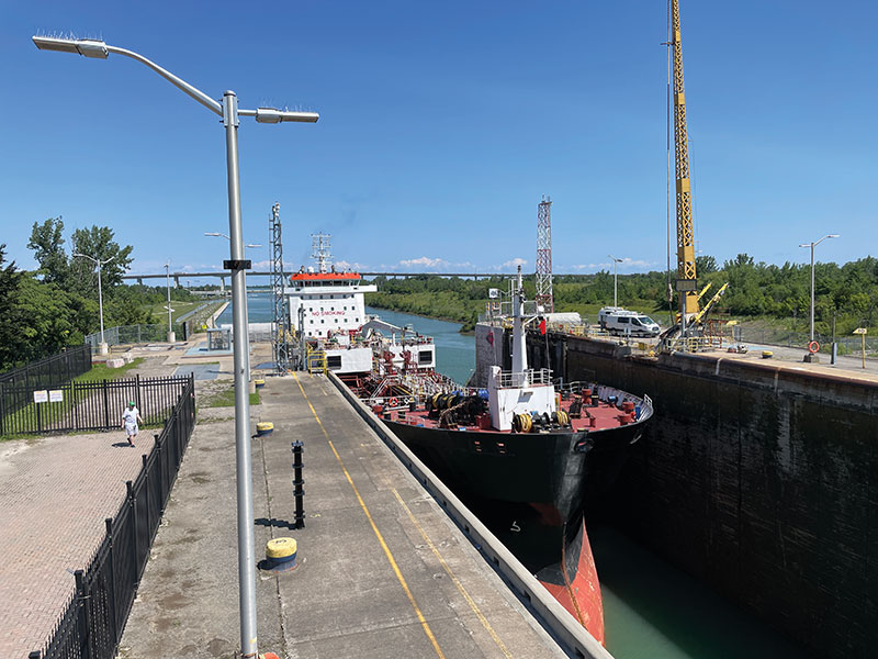 The present-day Welland Canal is actually the fourth version of the structure, which has grown larger and deeper over the years to accommodate progressively larger vessels. It’s easy to spot from the water, with its two long piers extending into Lake Ontario some 9 miles west of the Niagara River and 3 miles east of Port Dalhousie. A 50-foot-high red and white radio tower looms over the tip of the western pier, with a 32-foot-high tower with a flashing green light capping the east pier. You’ll obviously want to watch for commercial ships any time you’re near the canal entrance, as the big boats can approach much more quickly than you think.