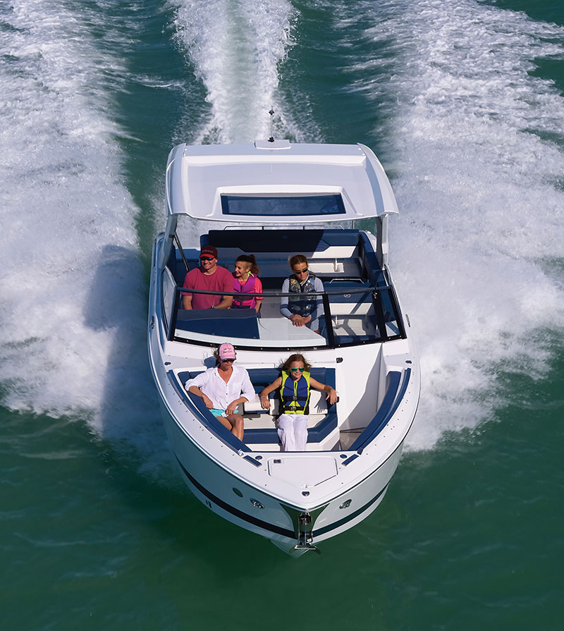 “This is the kind of boat I’d love to put my family on a cloudless, 80-degree day and shoot up to an island,” he says. “We’d have some lunch, go swimming, and use the Lilypad to full advantage before cruising home with the wind in our hair at 38 miles per hour.”
