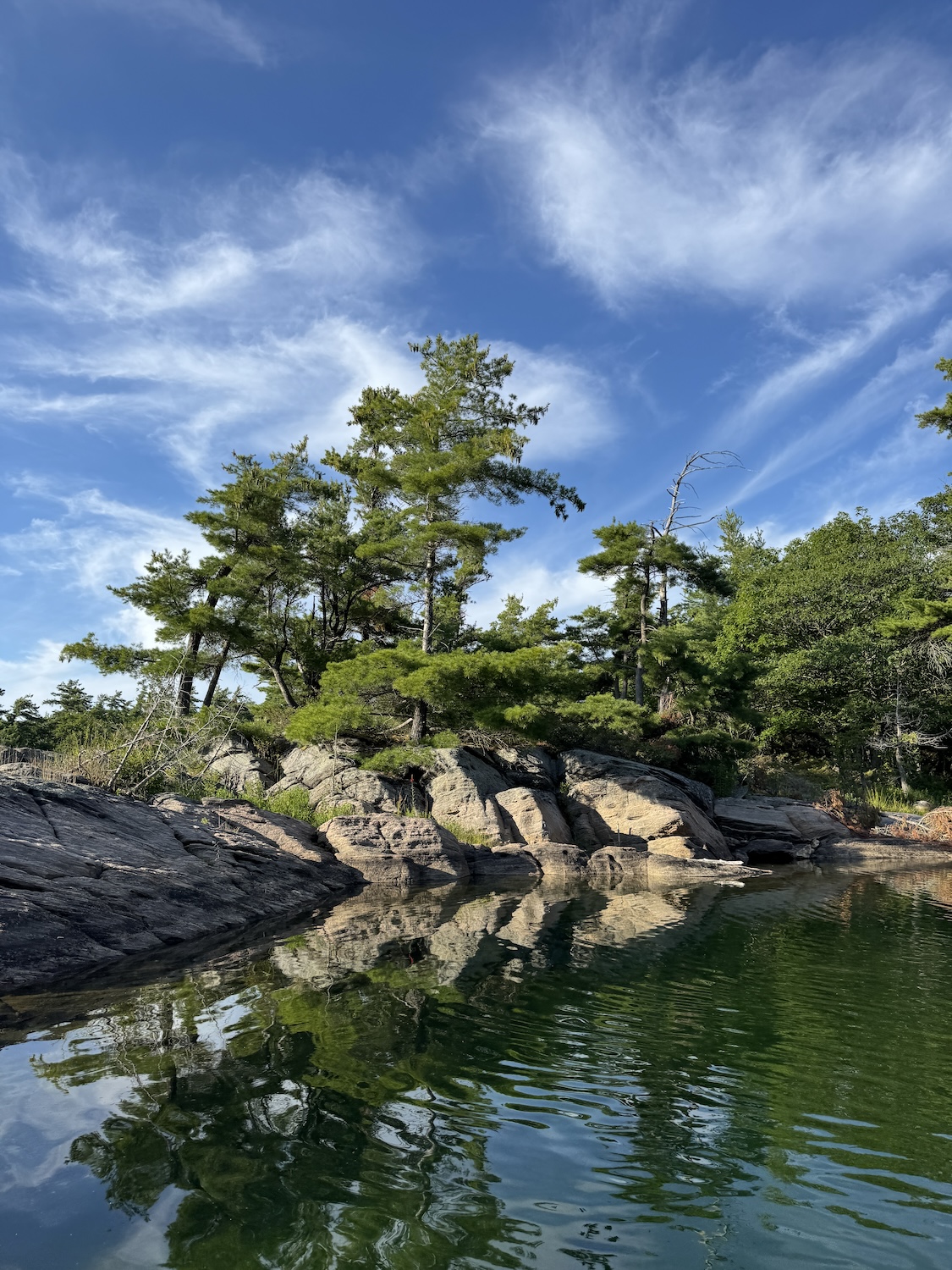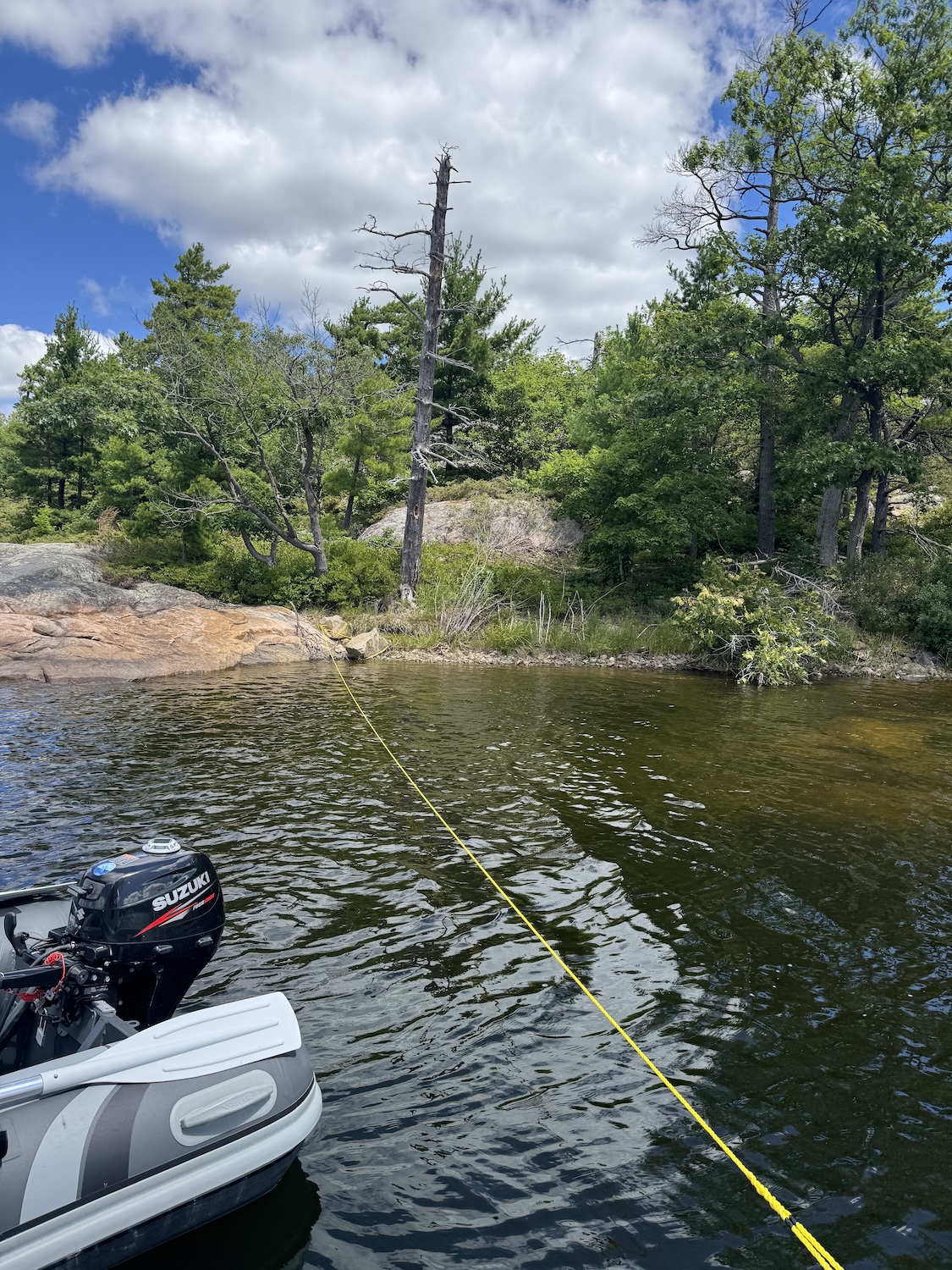 After Hockey Stick Bay we made the jump up to Wani Bay, which was a highlight for all of us. This open bay is closer to the larger Georgian Bay, making the water a tad colder but with a direct view of the sunset. We enjoyed a dinghy ride that evening weaving our way through all the rocks and spotting fish down below.