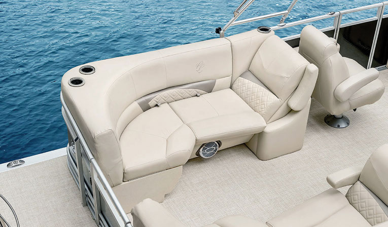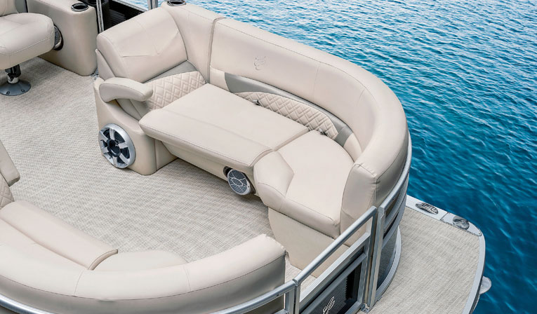 Engine options from Mercury and Honda range from a 9.9 — making the boat suitable for lakes with horsepower restrictions — all the way up to a 150-hp outboard. Selecting a performance package with a tri-toon allows the boat to take it up to 250 hp.