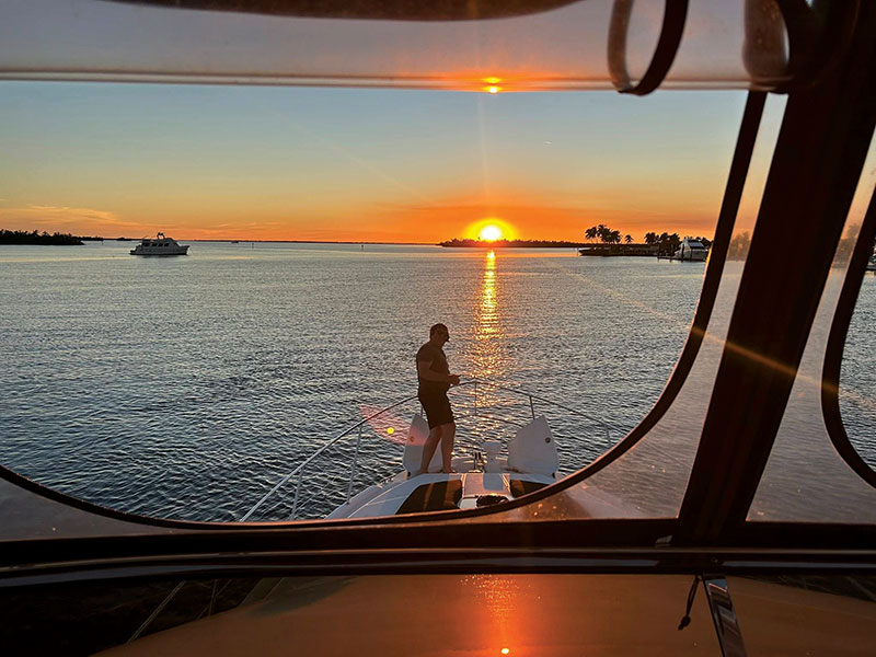 SWFY’s boats are based at Tarpon Point Marina, part of The Westin Cape Coral Resort at Marina Bay. The company’s current fleet is made up of three powerboats: A Camano 31, a Sea Ray 310 and a Meridian 341. Rounding out the fleet are two monohull sailboats, a Jeanneau Sun Odyssey 440 and a Beneteau 38.1. The Beneteau is used only for sailing classes. By March, Hansen hopes to have added a Fountaine Pajot Helia 44 sailing cat in the fleet.