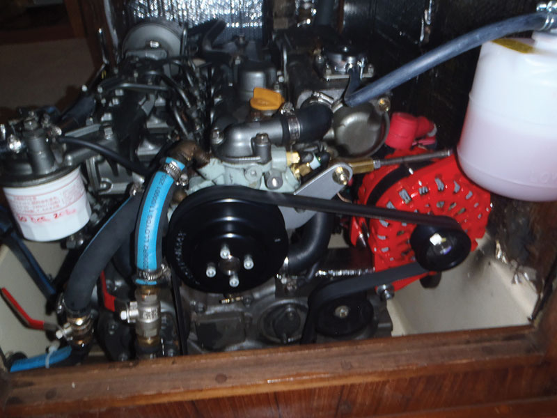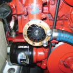 2. Engine raw water pump: As the name implies, it draws raw water in and pumps it through the open or raw water side of the engine’s cooling system. Inside this pump is typically a replaceable rubber impeller, the vanes of which can fail and break off due to age or overheating when running the pump dry (forgetting to open the engine raw water seacock is a common cause of this). Opening the engine raw water seacock before cranking your engine and checking the exhaust for ample water discharge after starting are two important items for every boat owner’s engine startup procedure.