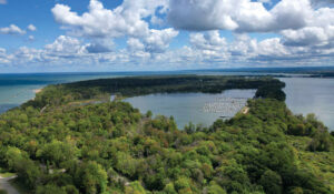 Navigating to Erie is straightforward, with wide-open approaches utterly devoid of snags or obstructions. That said, it’s admittedly not the easiest U.S. city to spot from the water. That’s because Erie’s downtown core is physically hidden behind the 3,112-acre wooded peninsula that forms Presque Isle State Park. The sandy peninsula extends four miles northeast into the lake from the shoreline west of town, requiring boaters to navigate to the park’s east end where a well-buoyed entrance awaits in the shadow of the 74-foot-tall Presque Isle Lighthouse.