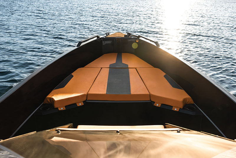 The IRON 827 T-Top RIB is definitely one of those boats that can’t be ignored. Her stealthy black exterior profile — also available in white and gray hulls with cushions in contrasting colors like titanium, red, orange, skylight and saffron — simply can’t help but stand out from the crowd.