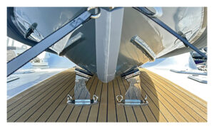 An Australian company called Davco says its new AquaChock tender davit can not only be removed when not required, but is the only davit of its type that sits truly flush to the deck to eliminate a trip hazard and a legitimate safety concern. Made from 316 stainless steel and capped with non-slip grip pads, the davit can be removed without tools in seconds, leaving a flat deck behind. Boasting a capacity of 1,440 pounds, the chocks come in both foredeck and swim platform versions.