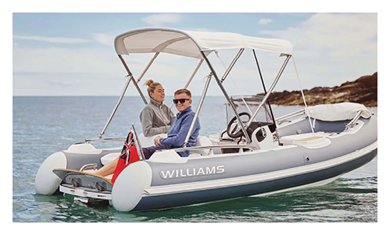 Designed to fit the tender garages of bigger yachts in the 75-foot range, the newly redesigned Williams Sportjet 460 carries up to six passengers in comfort and — should the need arise — gets them where they’re going in a hurry, with a top speed of 48 mph.