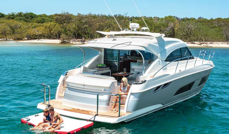 Trying to get on the Riviera 4800 Sport Yacht proved a daunting trial in itself. The scheduling was delayed, the yacht was not in the planned location, the yacht was needed at the Miami Boat Show, the company rep was out of town, etc. Alas, I was able to get on-board a mere two days before the story’s deadline. The aforementioned issues actually afforded me two things: To meet the local dealer who was a wealth of Riviera information and to test the 4800 on a not-so-spectacular day. That in itself was gold as I was able to see first-hand the attributes of the 4800 in 4- to 5-foot seas, as well as in calm waters.