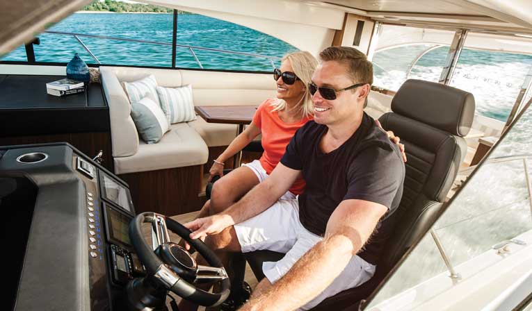 With an eye on the white-capped sea as we headed towards the inlet, I told Rick Young — general manager of Grande Yachts International in Dania, Florida (with additional locations in Jupiter, Miami and Deerfield Beach) and my new friend who bailed me out — to forget it as I didn’t want to bang up his yacht. I might as well have been speaking to a deaf guy. Young pointed the 4800 square into the confusion, telling me how the yacht will handle the mess. You know what, the 4800 performed exactly as Young described. It wasn’t a white knuckled ride but rather a sure-footed, solid and quiet ride.